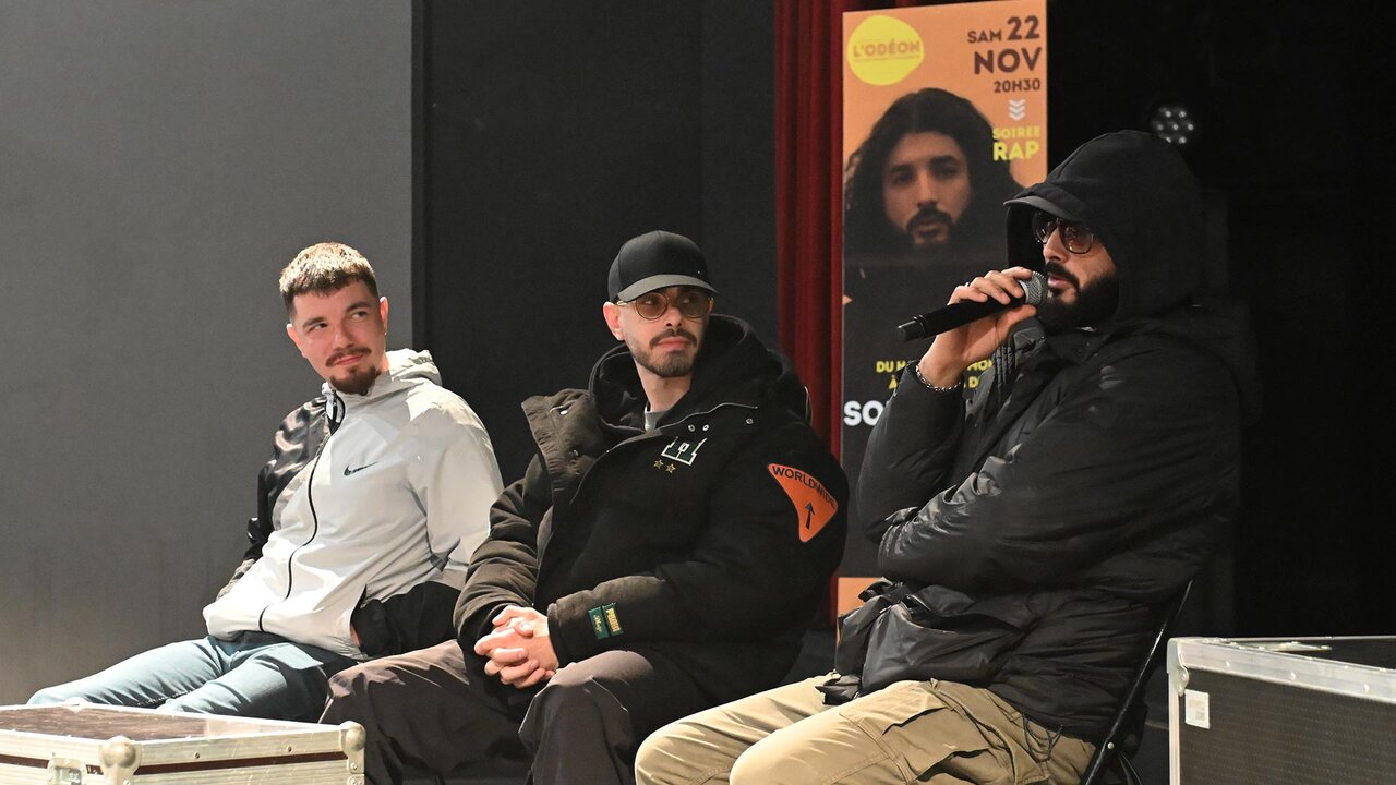 Dans la salle de L’Odéon, les oreilles sont attentives. Face à une quarantaine de spectateurs, six invités font vivre la rencontre. Raphaël Da Cruz, journaliste indépendant, anime la discussion aux côtés de son confrère Khalil. En face d’eux, Philippe Cadiot, programmateur du Café La Pêche, scène musicale municipale de Montreuil, véritable écosystème du paysage artistique et culturel, et lieu de citoyenneté où de nombreux talents ont émergé, dont le rappeur Werenoi disparu en mai dernier. À leurs côtés on retrouve Léo HTAG, photographe et réalisateur de clips pour L’uZine et Souffrance. Enfin, deux membres du label Hall26 et du collectif L’uZine, Tony Toxik, beat maker et Souffrance, rappeur connu pour son univers brutal et authentique.