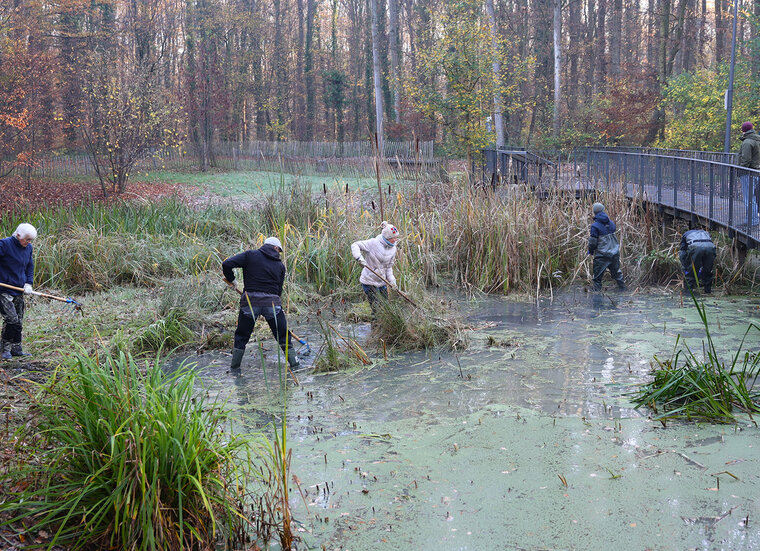 « Le but est d’entretenir la mare, c’est-à-dire tailler ou arracher les végétaux qui prennent trop de place, afin d’éviter l’eutrophisation – le manque d’oxygène – qui risque de refermer la mare », explique Thomas Dumont qui pilote l’intervention. Un excès de matière organique ou de végétation peut en effet déséquilibrer cet habitat fragile.