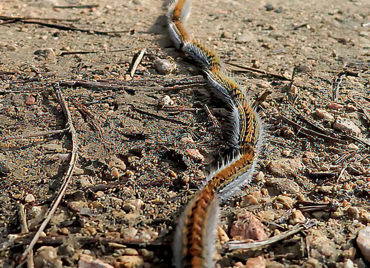 La scène peut prêter à sourire : plusieurs chenilles descendent d’un arbre les unes derrière les autres, bien alignées. Leur objectif : rejoindre le sol et s’enfouir sous terre afin de se transformer en chrysalides. Au printemps, ce phénomène se répète chaque année pour la chenille processionnaire du pin (et en été, pour le chêne), qui sort de son abri hivernal en colonie. La vigilance est de rigueur face à ces larves de papillon. Pour rappel, elle est reconnaissable à sa teinte brune noirâtre avec des taches rouges sur le dessus et les flancs alors que sa face ventrale est jaune. Son corps est très velu, couvert de poils urticants. À noter que ces derniers se détachent facilement et ne disparaissent pas immédiatement.