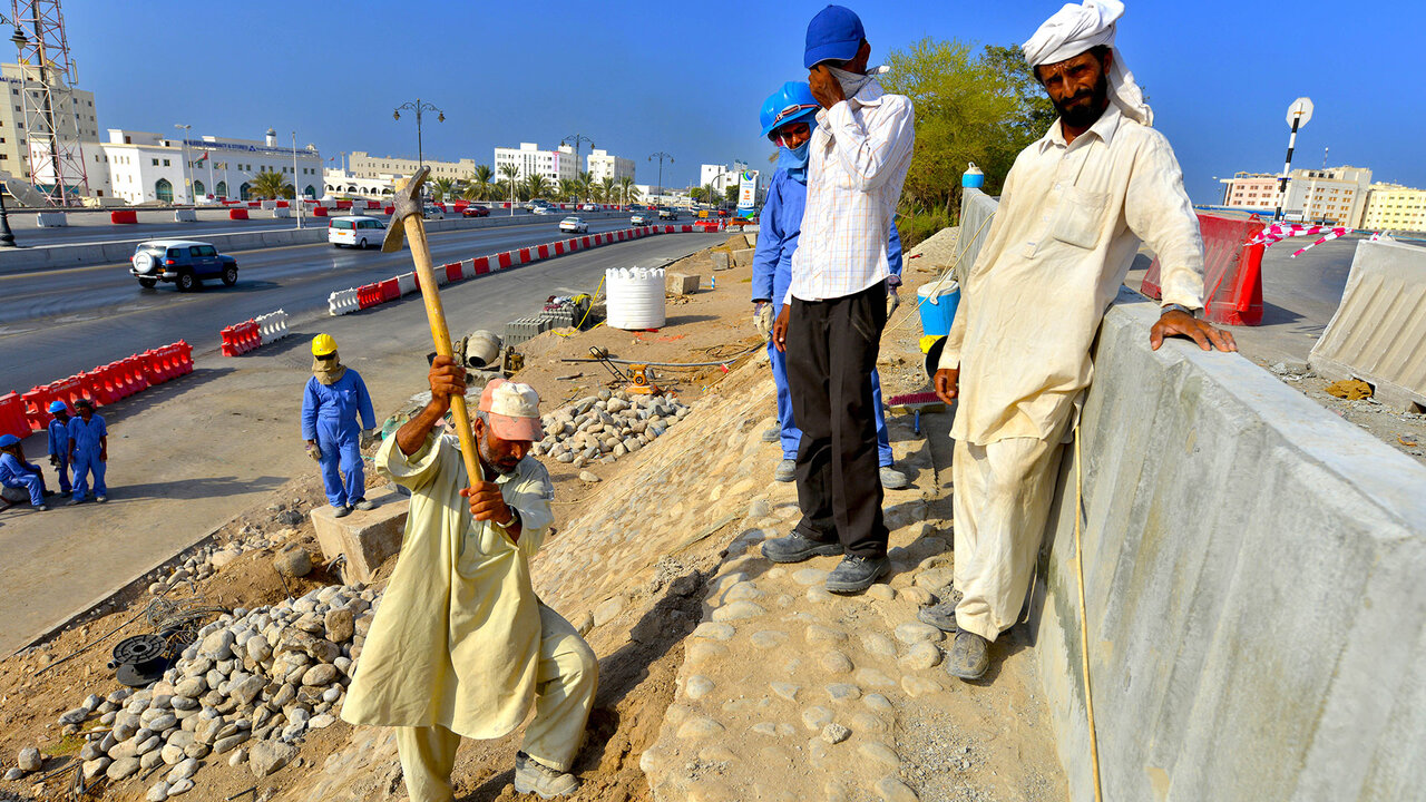 À Oman, près d’un habitant sur deux vient de l’étranger, principalement d’Asie. Après être entré chez un coiffeur sri-lankais, je m’arrête dans un boui-boui sans nom, coincé entre une agence Western Union et une boutique de tissu, et commande un karak — thé au lait et aux épices. À l’intérieur : du formica, trois ventilateurs fatigués et une télé diffusant un match de cricket indien.